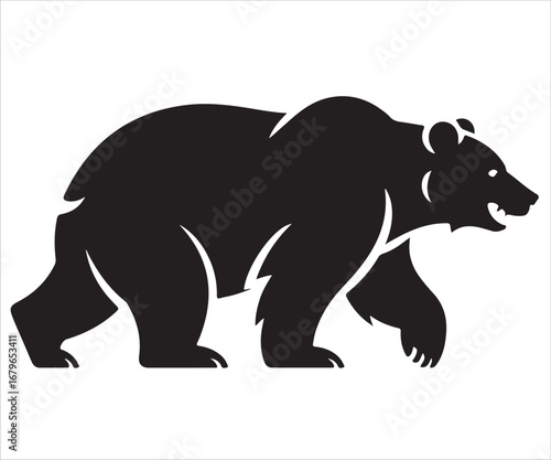 Fototapeta premium Silhouette of wild bear walking isolated on white background, vector illustration symbolizing wildlife, strength, predator, forest, power, wilderness, nature, danger, and animal kingdom design