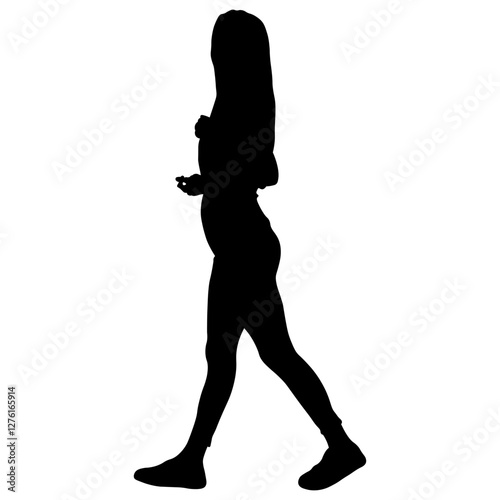 © Fadhil, Fototapeta premium Silhouette of Woman Walking Isolated on White Background. Vector Illustration