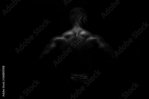 Naklejka premium Silhouette of young athlete bodybuilder man on black