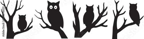 Fototapeta premium Silhouette owls, Tree branches, Night scene, Black and white illustration,...
