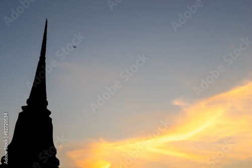 © jeafish, Obraz premium Silhouette pagoda with twilight sky