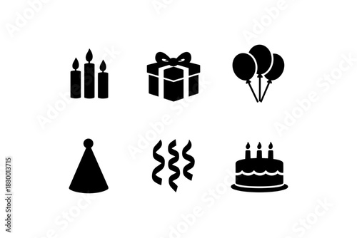 Obraz premium Silhouette party icons: celebratory elements for events and birthdays