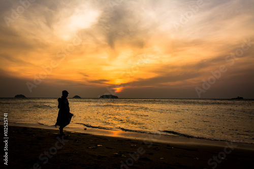 © meen_na, Fototapeta premium Silhouette people walking on the beach
