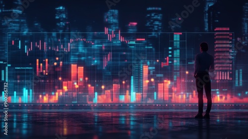 © Sandu, Obraz premium Silhouette Person Looking at Digital Financial Chart