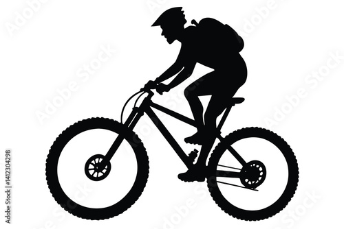 Fototapeta premium Silhouette Person Riding Mountain Bike Wearing Helmet with Transparent...