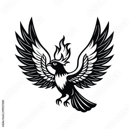 © Khalid, Obraz premium silhouette phoenix, eagle with fire wings