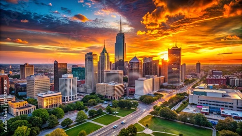 © Four888, Fototapeta premium Silhouette Photography of Indianapolis Skyline with Postcard Aesthetic for Indiana Travel Inspiration