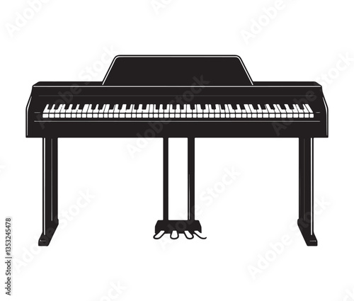 © Md.Riaz, Fototapeta premium Silhouette piano keys isolated on white. Minimalist digital piano illustration with pedals.