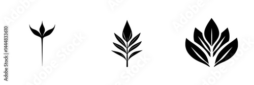 © Антон Сальников, Obraz premium Silhouette pictograms of various plant designs suitable for graphic design and creative projects