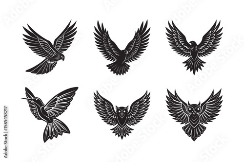 © shankari, Fototapeta premium silhouette pigeon ,eagles, others birds bundle wing shape on the white background