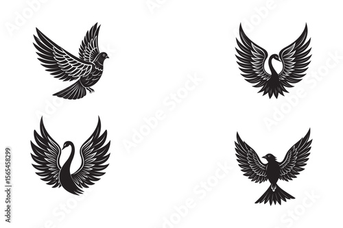 Obraz premium silhouette pigeon ,eagles, others birds bundle wing shape on the white...