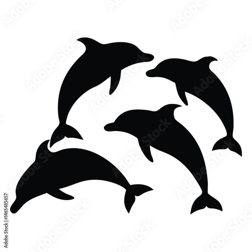 Fototapeta premium Silhouette portrays five dolphins leaping playfully together, a marine life illustration