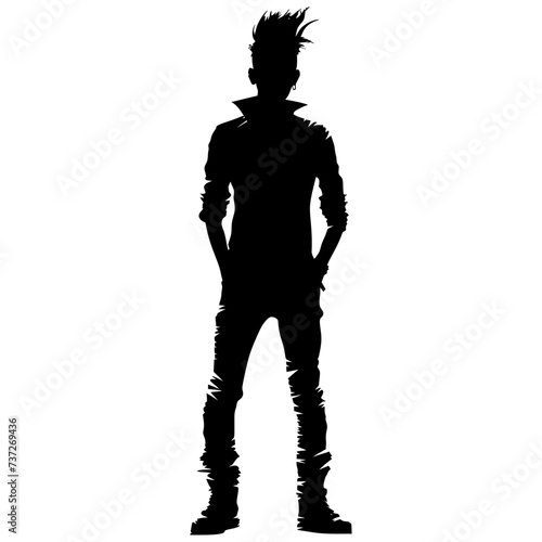© NikahGeh, Fototapeta premium Silhouette punk man black color only full body