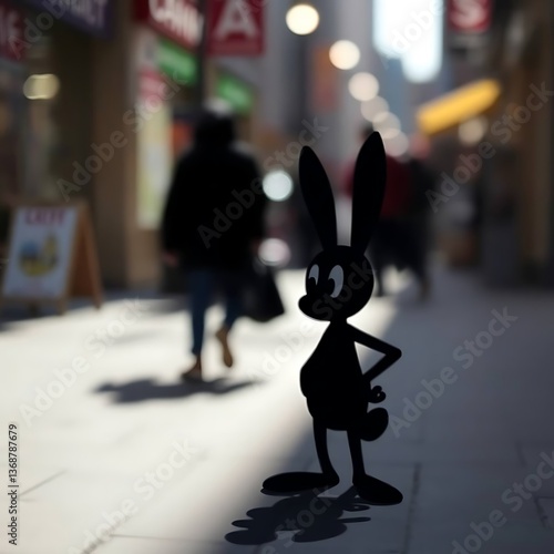 Fototapeta premium Silhouette rabbit in city street