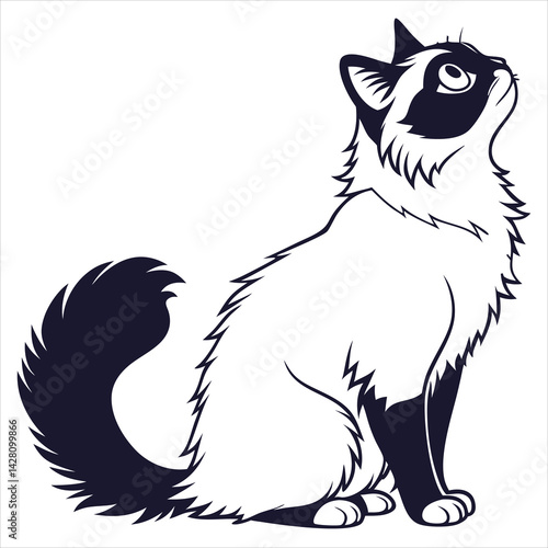 © Ankabut team, Obraz premium silhouette ragdoll cat on white background