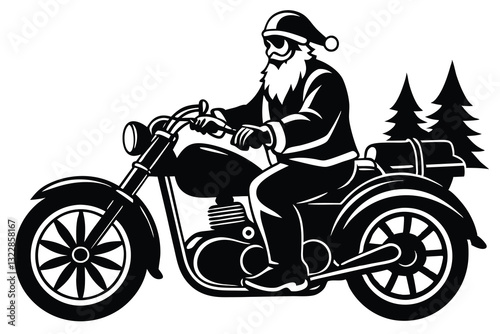 © shopone, Fototapeta premium silhouette santa claus riding motorcycle