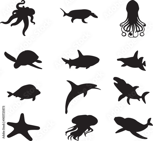 © Selimfreelancer, Fototapeta premium Silhouette sea animals
