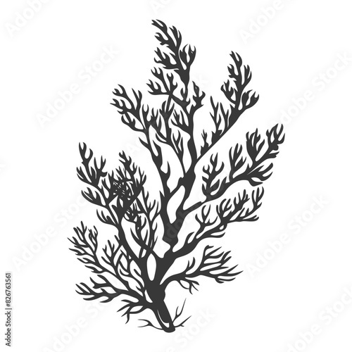 Fototapeta premium Silhouette seaweed plant black color only