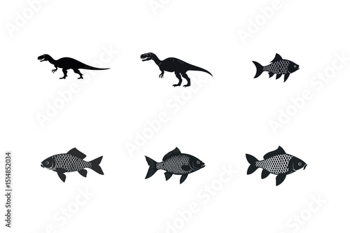 © ABDUL, Fototapeta premium Silhouette set dinosaurs and fish illustrations