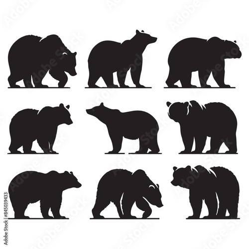 © Shamim Akhtar, Naklejka premium Silhouette set of bear. Vector isolated illustration