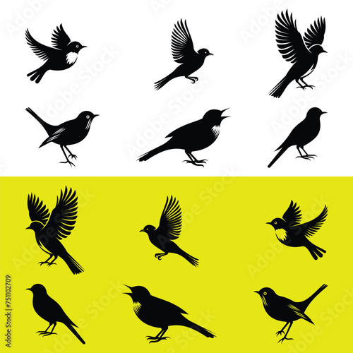 Obraz premium SILHOUETTE SET OF BIRDS ISOLATED ON WHITE AND YELLOW BACKGROUND
