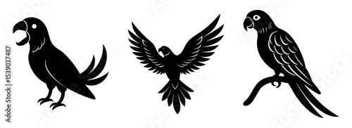 Fototapeta premium Silhouette set of exotic parrot avian tropical birds vector graphic