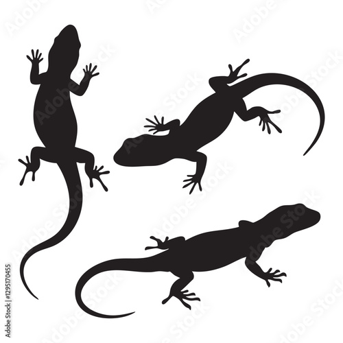 © Shamim Akhtar, Fototapeta premium Silhouette set of Lizard on white background