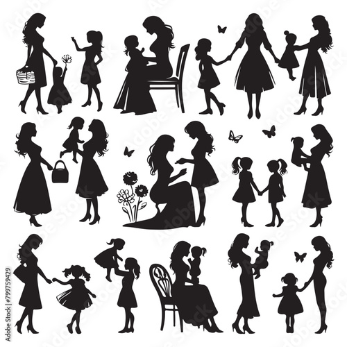 © Shamim Akhtar, Fototapeta premium Silhouette set of mother and daughter