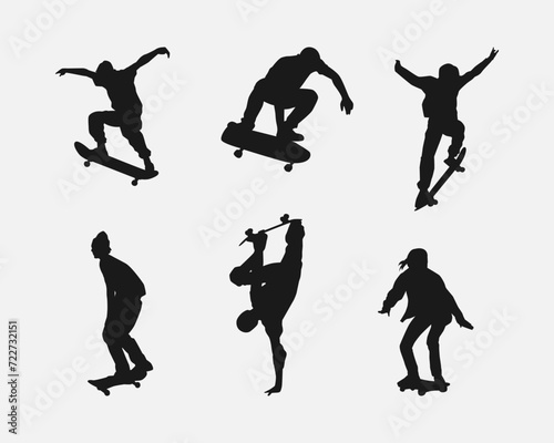 Obraz premium silhouette set of skateboarder. sport, skateboard. vector illustration.