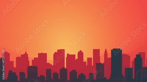 © Matthew, Naklejka premium Silhouette skyline of a modern city at sunset with orange background.