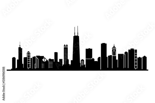 Naklejka premium Silhouette skyline of Chicago with iconic buildings