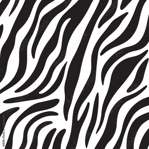 Obraz premium Silhouette Style Vector Common Zebra Skin Pattern Design – Minimal Monochrome Animal Print for Fashion, Textile, Interior Decoration, and Branding, Seamless Black and White Wildlife Stripe Graphic