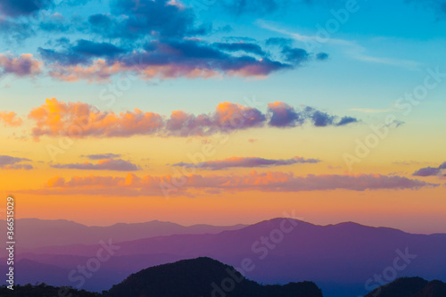 © themorningglory, Fototapeta premium Silhouette sunset in mountains colorful sky with cloud