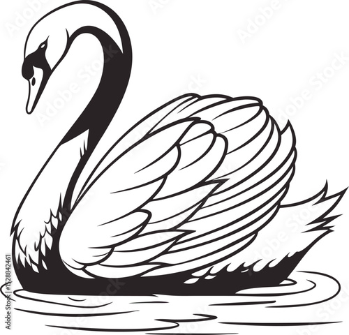 © Ankabut team, Fototapeta premium silhouette swan on white background