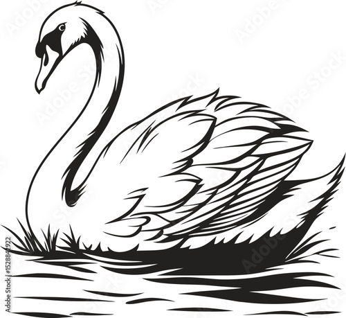 © Ankabut team, Fototapeta premium silhouette swan on white background