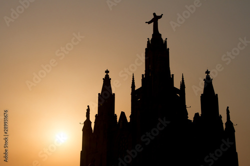 © Alexey Oblov, Fototapeta premium silhouette Temple del Sagrat Cor de Jesus in sunset