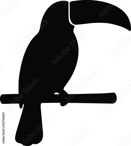 Fototapeta premium Silhouette toucan bird perched branch tropical wildlife vector illustration