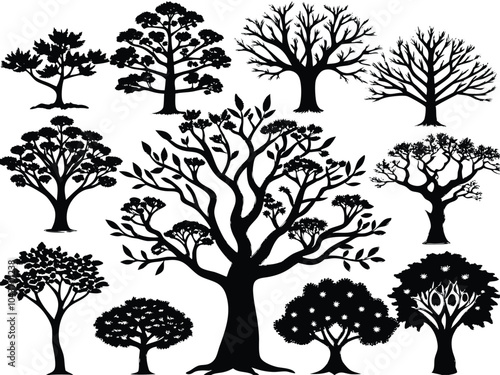 © TanvirShuvo, Obraz premium Silhouette Tree Set.
