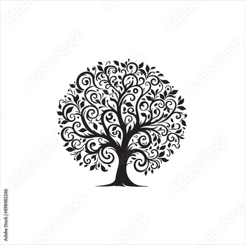 Obraz premium Silhouette tree with leaves