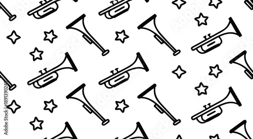 © ArtbyRahat, Obraz premium Silhouette trumpets seamless pattern vector illustration design