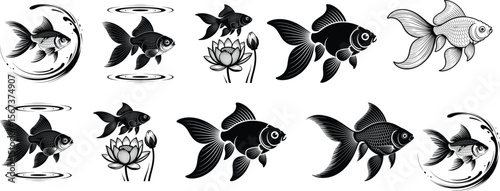 Fototapeta premium Silhouette vector bundle of decorative goldfish and lotus with various poses...
