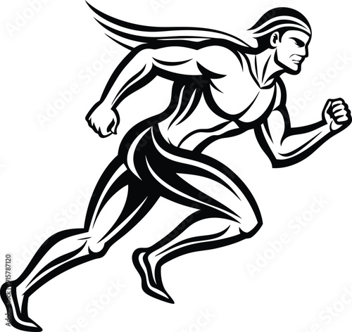 © Tarek, Obraz premium Silhouette vector logo of an athletic runner in motion, simple shapes and lines, white background