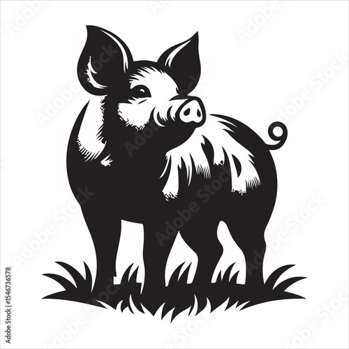 Fototapeta premium Silhouette vector of a pig standing on a white background