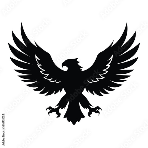© Sidratul, Obraz premium Silhouette vector of an eagle in flight with spread wings on a white background