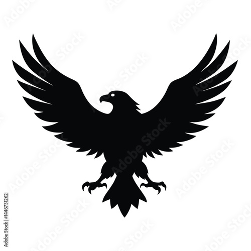 © Sidratul, Obraz premium Silhouette vector of an eagle in flight with spread wings on a white background