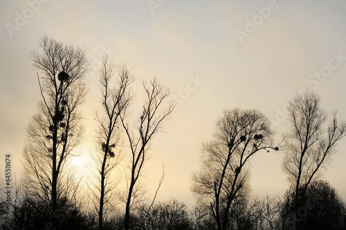 Obraz premium Silhouette von Bäumen im morgendlichen Licht