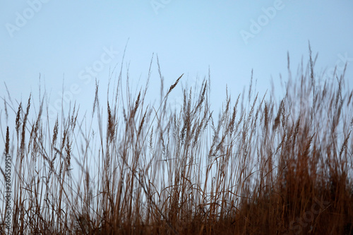 © Oda Hoppe, Obraz premium Silhouette von wilden Gräsern wie gemalt im Gegenlicht der Sonne als Close up