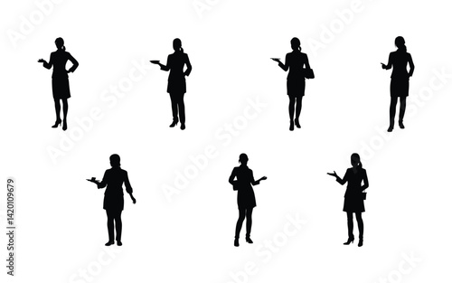 © AR Graphic It BD, Fototapeta premium Silhouette Waitress Poses Set - Professional Female Server Illustration