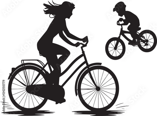 Obraz premium Silhouette Woman Riding Bicycle With Man Following