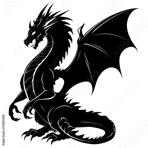 © NikahGeh, Naklejka premium Silhouette Wyvern black color only full body